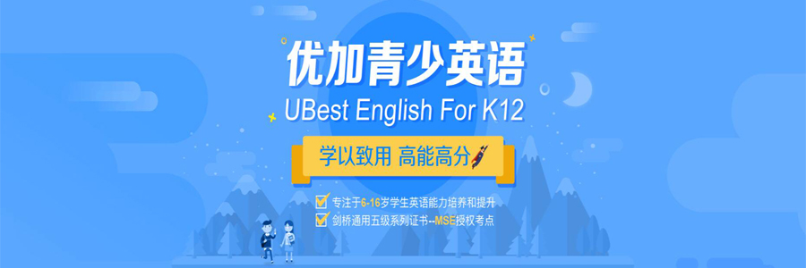 优加青少英语(UBest English for K12)是新航道国际教育集团旗下高端青少英语教育品牌。以“培养真正能使用英语的中国青少年”为己任,摒弃传统的“应试”英语教育模式,深入研究儿童和青少年的心理特征和学习特性,采用中学生心理和英语学习特征的英语教材——《剑桥国际少儿英语》《剑桥英语(青少版)》原版教材,严选获得英国剑桥大学TKT教师资格认证,或取得教师资格证 英专/硕毕/全英文授课经验丰富教师进行授课。优加设9级课程体系,听说读写同步融合,学-读-用-测一体,让孩子获得的同时,更获取良好的英语能力,达到真正的能够运用英语的水平。了解更多:英语学习迎来3.0时代,要像学语文一样学英语>>